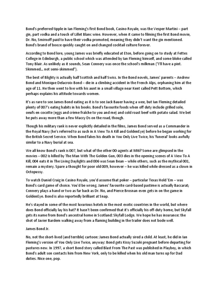 Bond Personal Data Pdf James Bond Fictional British Secret Agents